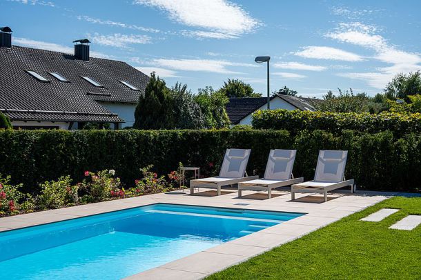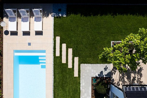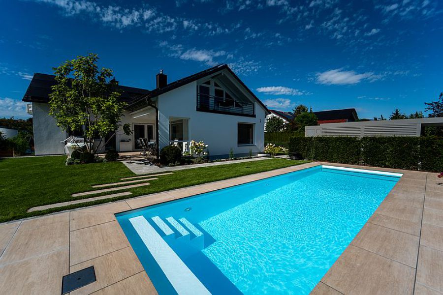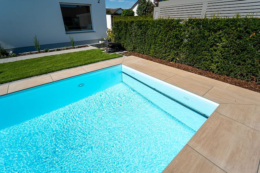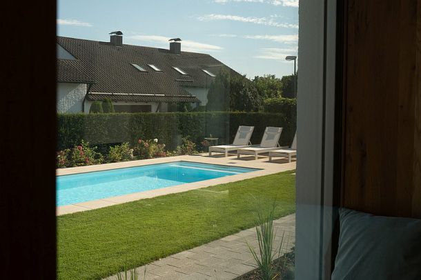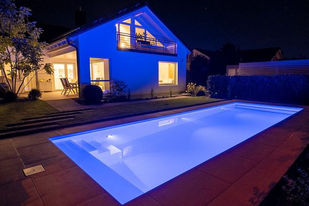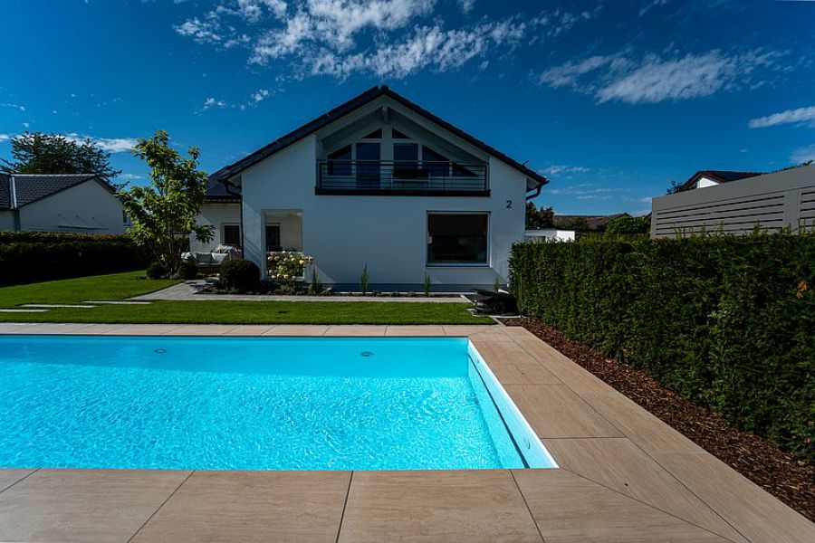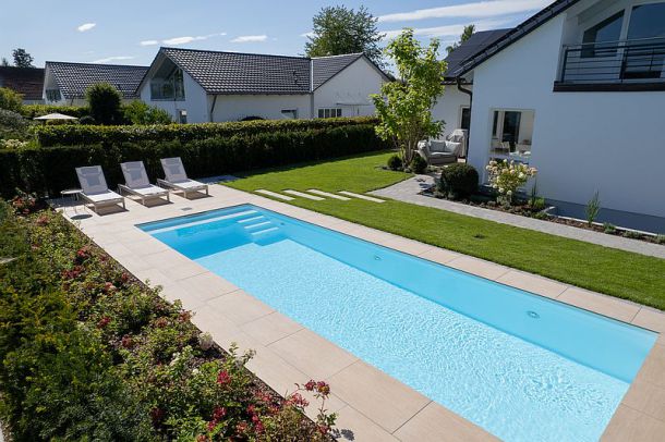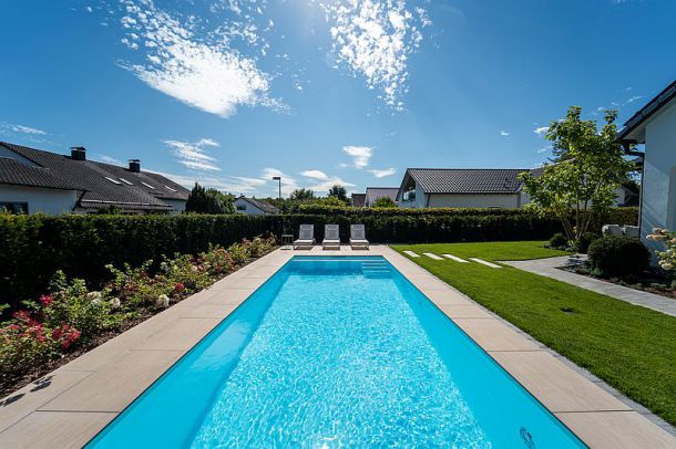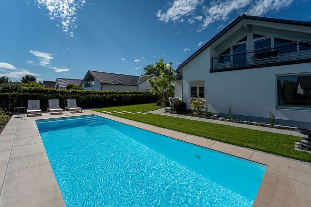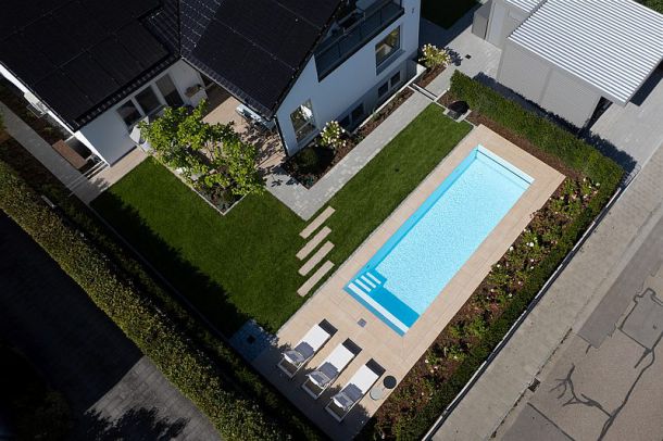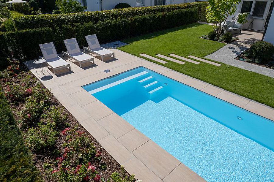 Bei diesem Projekt durften wir einen modernen Pool mit den Maßen 9×3,2m im Garten einer eleganten Vorstadtvilla realisieren. Das Ergebnis: ein Harmonisches Zusammenspiel aus klarer Architektur, stilvoller Gartengestaltung und einem Schwimmbad, das bei Tag und Nacht ein echtes Highlight ist. Ob als Ort der Entspannung, für die Familie oder laue Sommerabende mit Freunden. Dieser Pool vereint Lifestyle und Lebensqualität. Für hygienisch reines Wohlfühlwasser sorgt dabei die vollautomatische Ospa-BlueClear-Anlage. Die Schwimmbadabdeckung wurde in einem Rucksackschacht verbaut und fährt nahezu unsichtbar aus einem kleinen Schlitz in der Beckenwand.