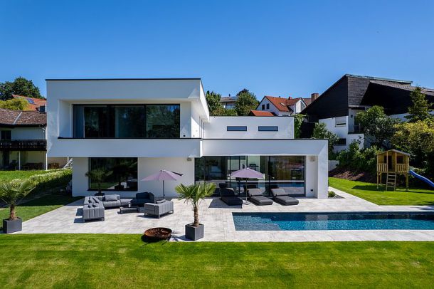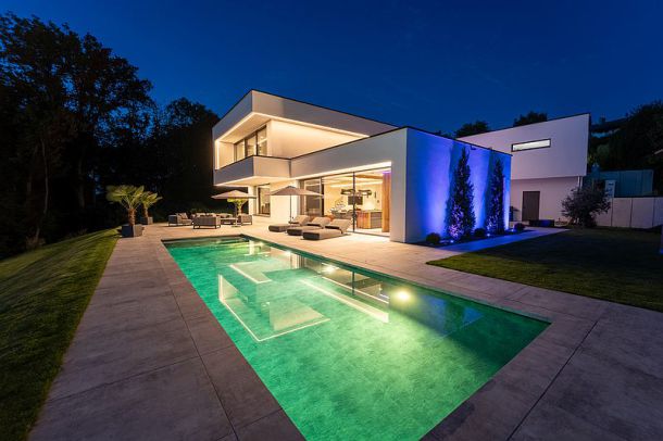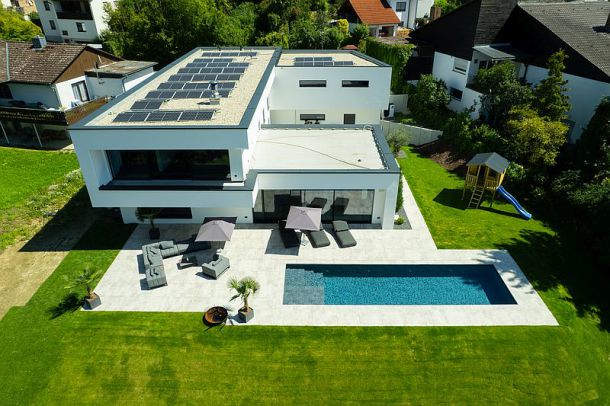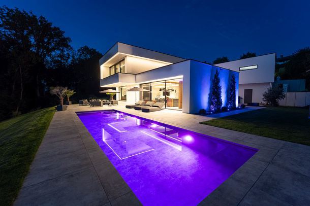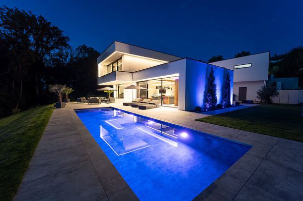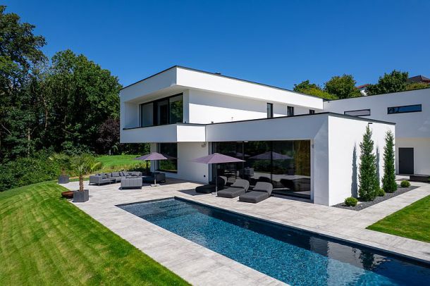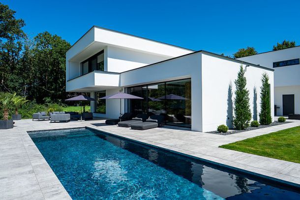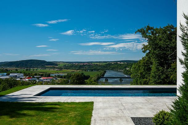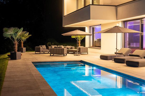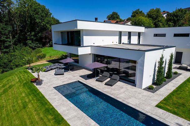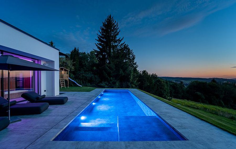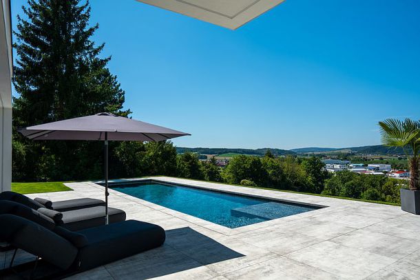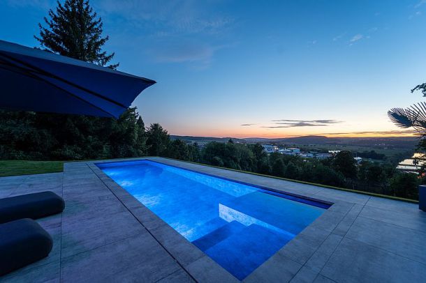 Ein privates Aussenschwimmbad das Urlaubsfeeling nach Hause bringt.