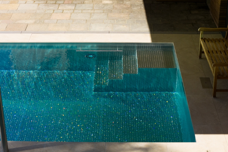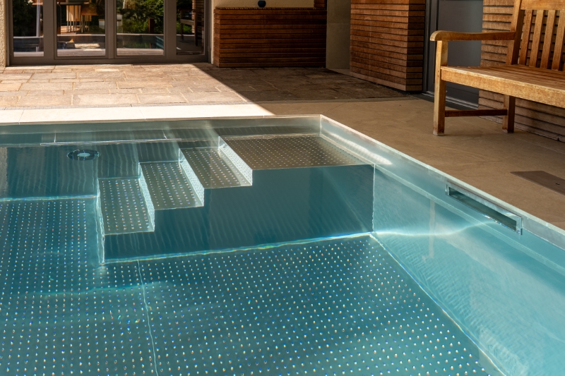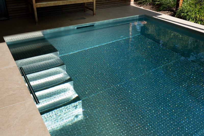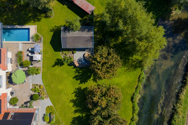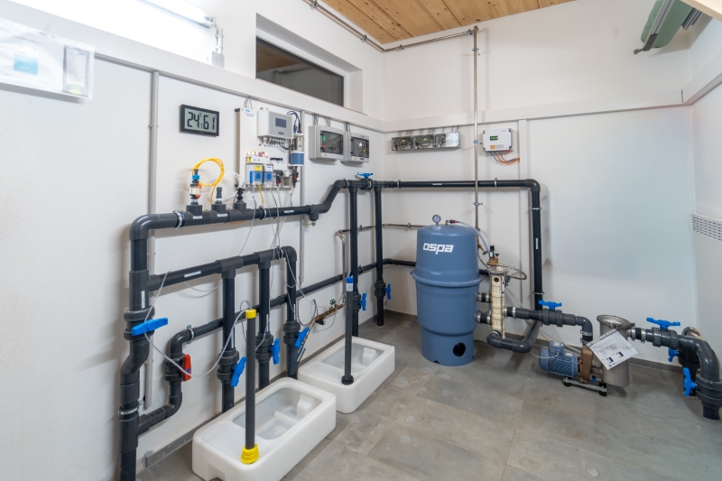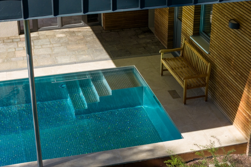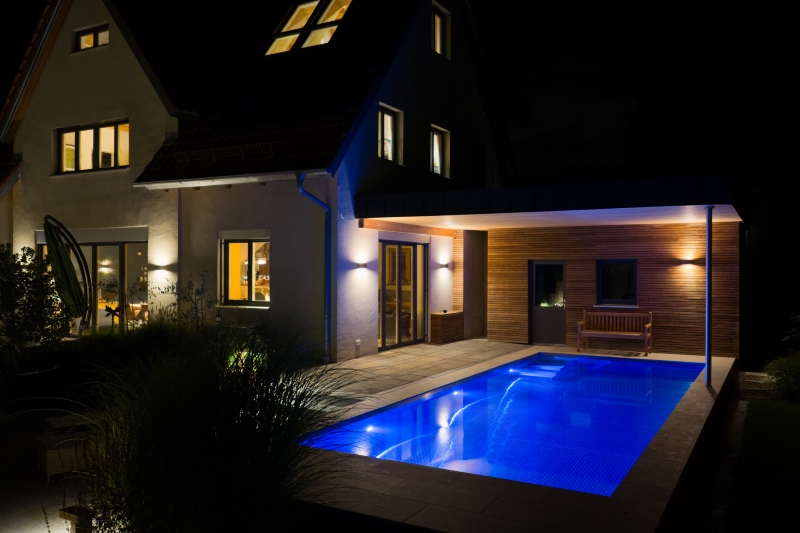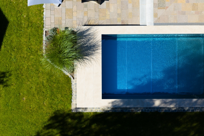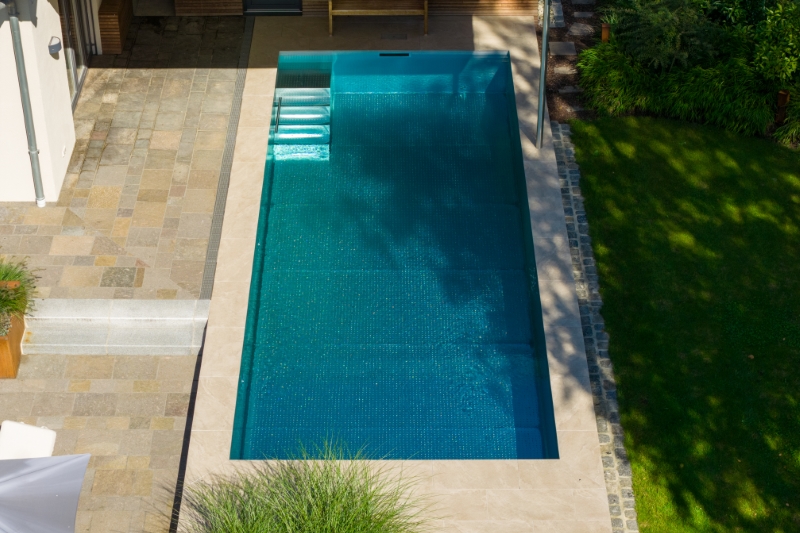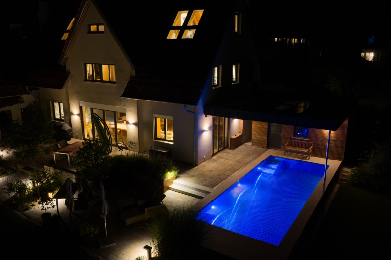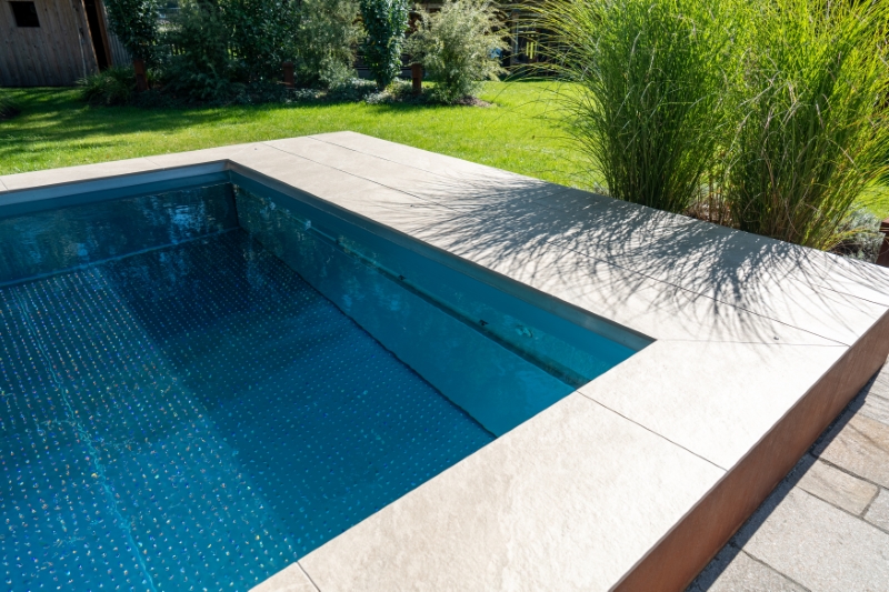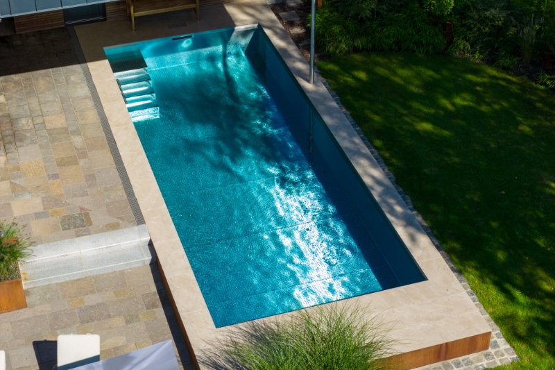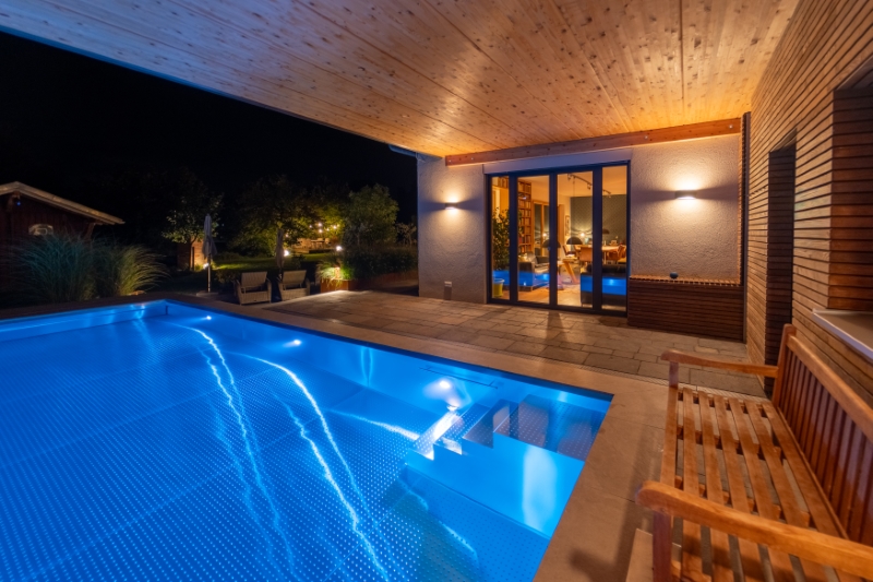 Das Projekt Rivus zeigt, wie sich exklusive Architektur und technische Perfektion auch unter herausfordernden Bedingungen realisieren lassen. Die größte bauliche Besonderheit: die unmittelbare Nähe zum Fluss. Nur wenige Meter entfernt liegt der Wasserspiegel des Flusses – etwa 40 cm tiefer als der Wasserspiegel des Edelstahlpools. Diese Lage verlangte höchste Präzision in Planung und Bauausführung. Optisch überzeugt Rivus mit einer klaren, modernen Gestaltung. Der Poolumgang wurde mit edlen, beigen Feinsteinzeugfliesen eingefasst, die eine warme Atmosphäre schaffen. Da das Becken aus dem Gelände herausragt, wurde die Erhöhung stilvoll mit Cortenstahl eingefasst, was einen spannenden Kontrast aus kühler Eleganz und rustikalem Charme erzeugt. Der Cortenstahl findet sich als Element in der Gartengestaltung wieder. Der Pool ist teilweise überdacht – das Dach ist in das neu errichtete Pool- & Technikhaus integriert, in dem die gesamte Schwimmbadtechnik untergebracht ist. Auch bei Rivus kommt modernste Ospa Schwimmbadtechnik zum Einsatz. Sie sorgt für kristallklares, hygienisches Wasser, höchste Betriebssicherheit und effiziente Ressourcennutzung. Gesteuert wird die gesamte Anlage über das Ospa SmartPool®-System, das die Bedienung kinderleicht über Smartphone oder Tablet ermöglicht. Der Edelstahlpool ist mit einem High-Level-Skimmer ausgestattet, der einen besonders hohen Wasserstand erlaubt. So wirkt die Wasserfläche optisch fast randlos – ein Detail, das die edle Gestaltung zusätzlich betont. Für Energieeffizienz und Sicherheit sorgt die vollautomatische Rollladenabdeckung, die unauffällig im Rucksackschacht verschwindet. Bei unseren Edelstahlbecken setzen wir auf höchste Qualitätsstandards: nicht nur die innenliegenden Bleche bei unseren Becken sind aus V4A-Edelstahl sondern auch die Außenverstrebung ist aus V4A-Edelstahl. Unter dem genoppten Bodenblech verbauen wir ausschließlich Zementestrich und keine Schüttungen o.Ä. um unseren anspruchsvollen Kunden ein dauerhaft wellen- und korrosionsfreies Edelstahlschwimmbecken zu gewährleisten. Nicht nur am Tag ist Rivus ein Statement. Auch nachts wird das Projekt durch eine stimmungsvolle Garten-Beleuchtung und hochwertige LED-Unterwasserscheinwerfer zum echten Highlight. So verbindet dieses Edelstahlbecken klare Architektur mit modernster Technik und schafft eine Atmosphäre, die zu jeder Tageszeit begeistert.